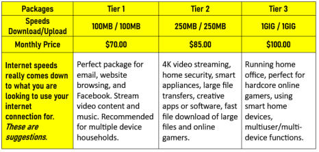 Broadband fiber internet. Higher speed packages are available